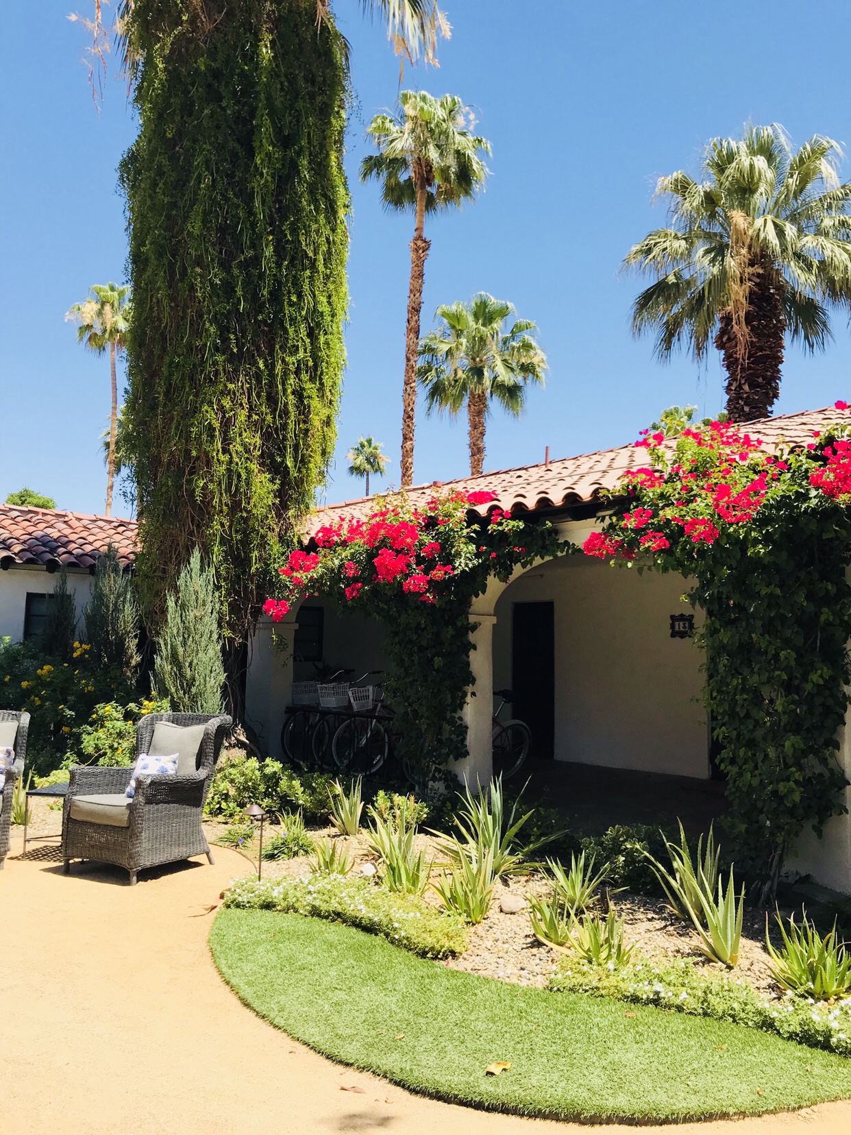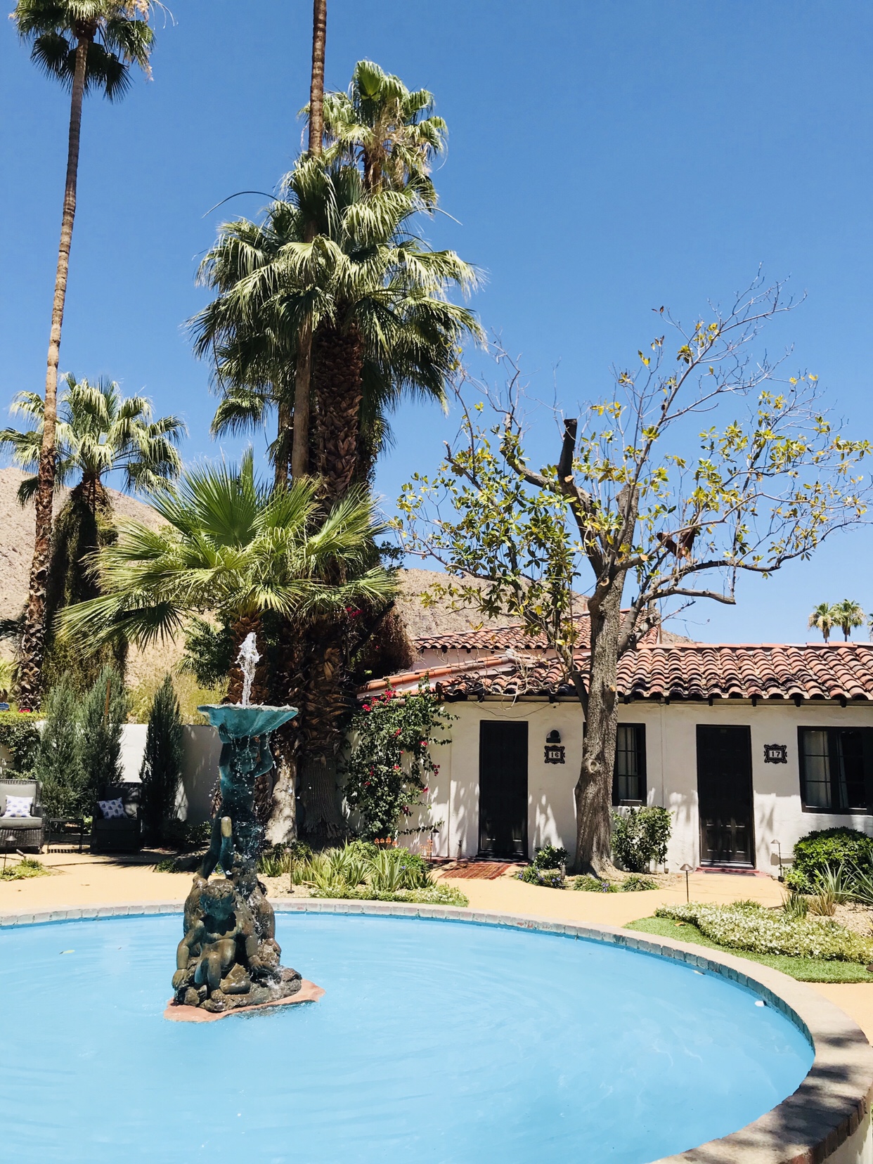 The Ingleside is romantic and secluded, set against those dusty, looming Palm Springs mountains. Our patio was quiet and blissful, partially enclosed with green shrubs and the sound of birds chirping.