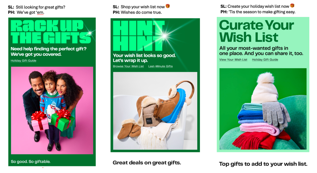 Holiday trigger emails for gifting & wish list