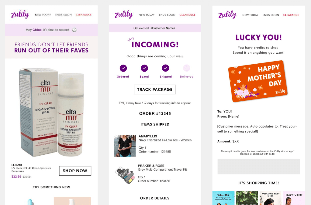 Emails for Zulily
