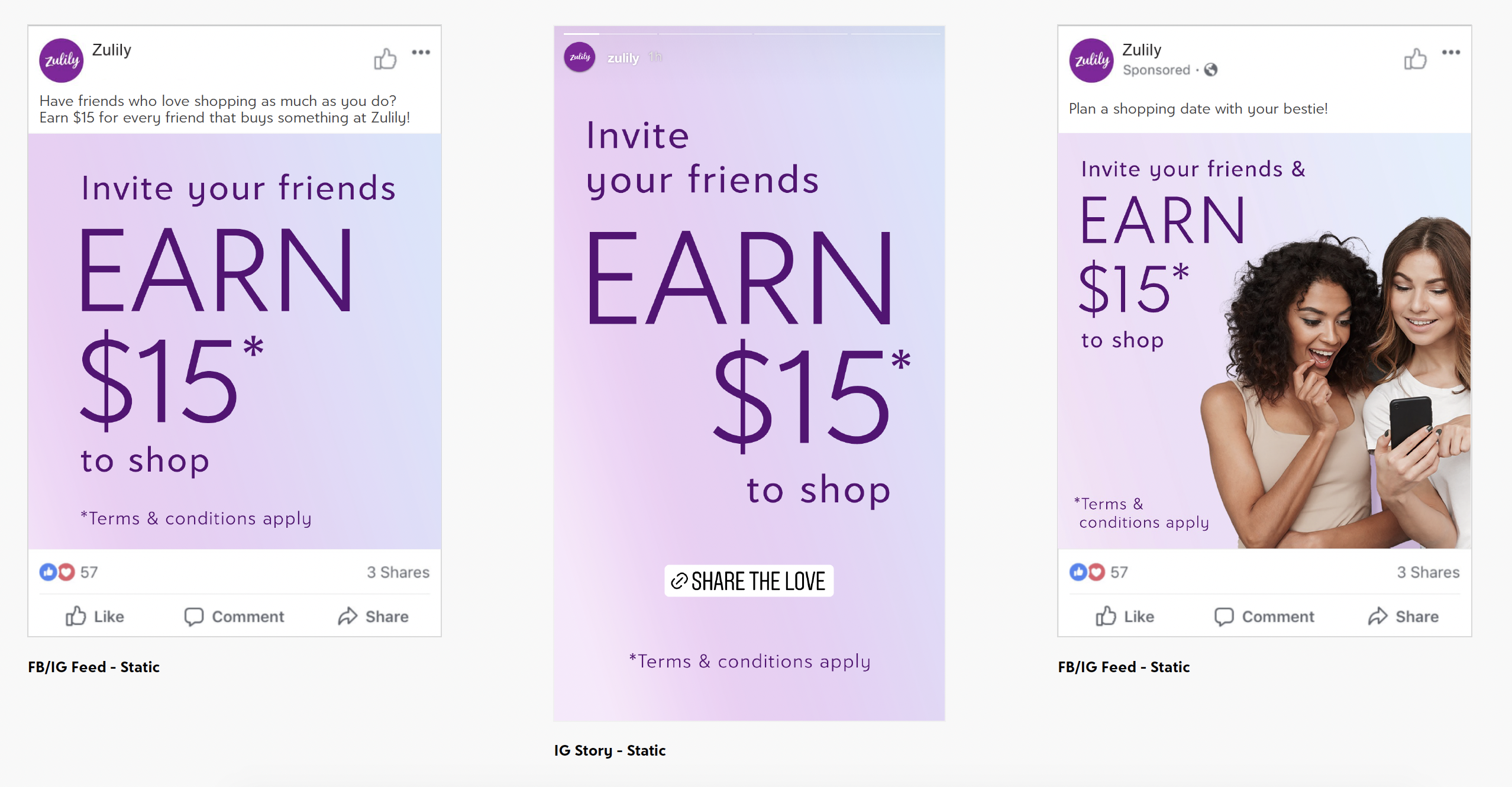 Zulily’s brand team approached the creative team to refresh the look and feel of the referral program. The creative team proposed a refreshed referral program to introduce new customers to the brand while also offering existing customers an incentive.