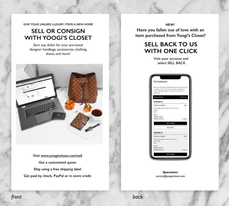 Ecommerce luxury reseller Yoogi’s Closet‘s design brief called for a new design of their retail branding including hang tags, dust bags, gift boxes, and gift cards to go in every order. The client wanted each item to use black and white to create a luxurious look for their high-end clientele.